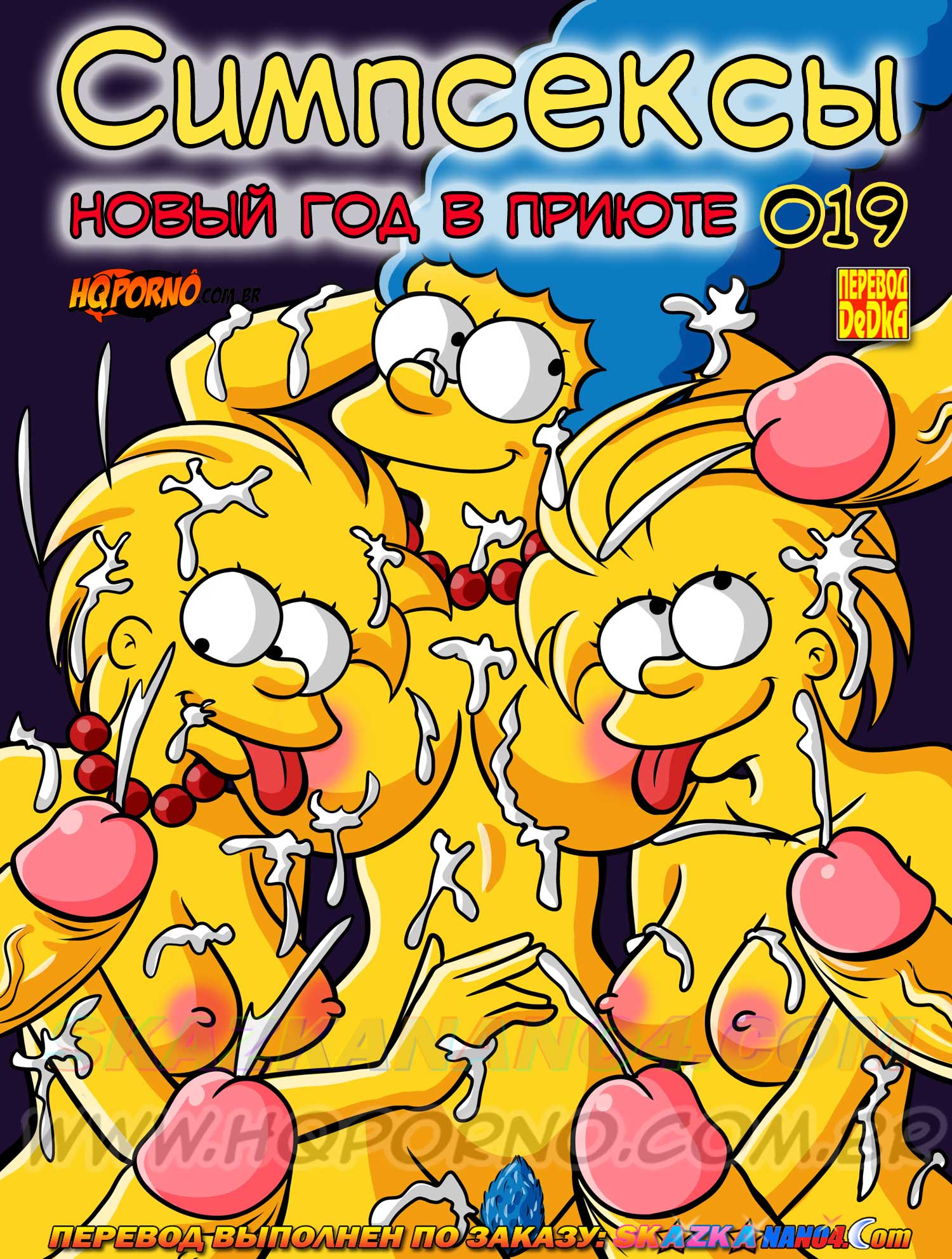 Порно комикс «Симпсоны. Часть 52. Ссора супругов лишает их секса.» Пара Симпсонов поссорилась из-за последних событий, связанных с алкоголизмом и супружескими изменами Гомера. Мардж разозлилась и легла спать на полу в гостиной, где ее спящую и увидели Нильсон и Милхаус…